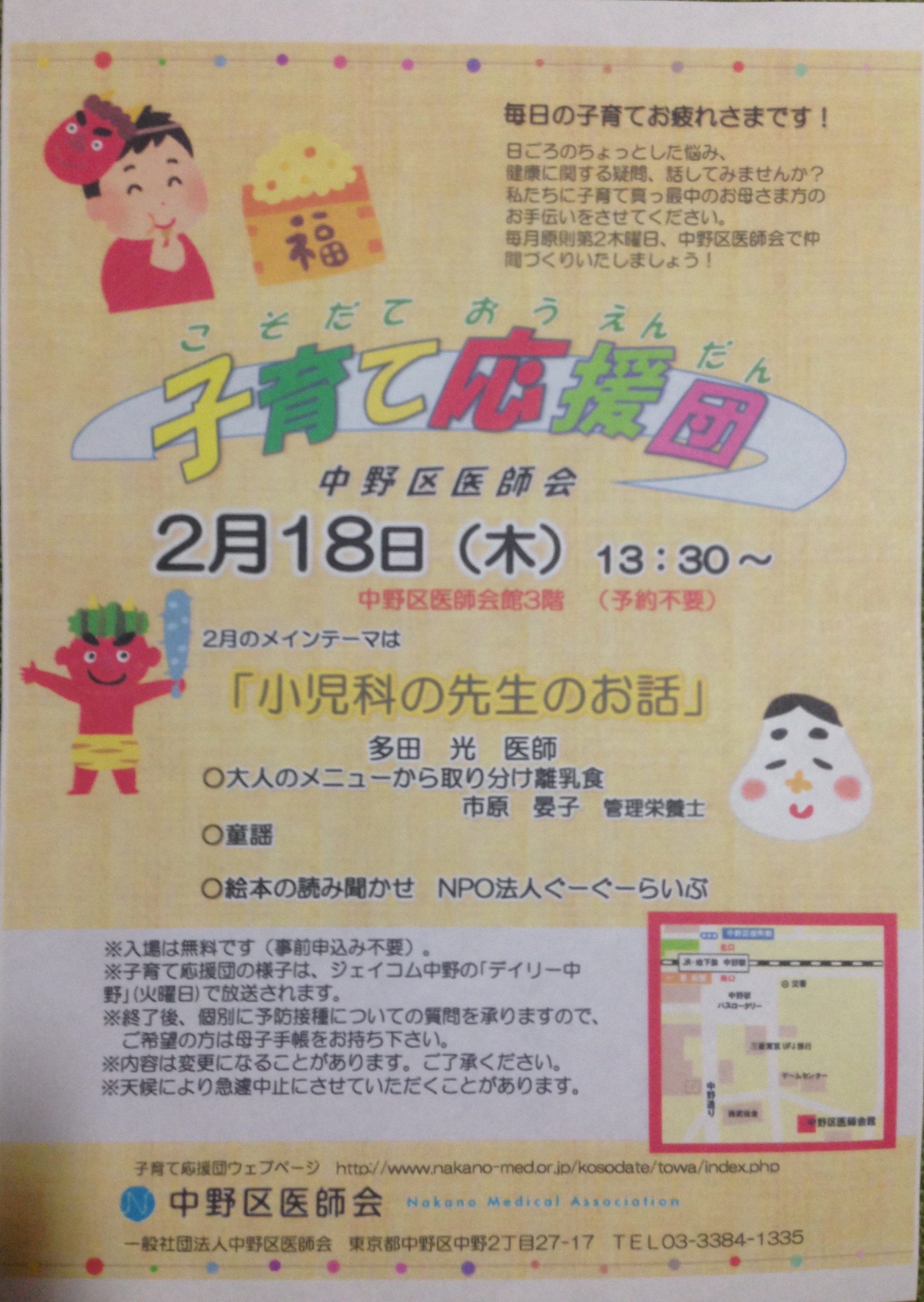 中野区医師会が毎月開催する「子育て応援団」の絵本のコーナーを担当しています!