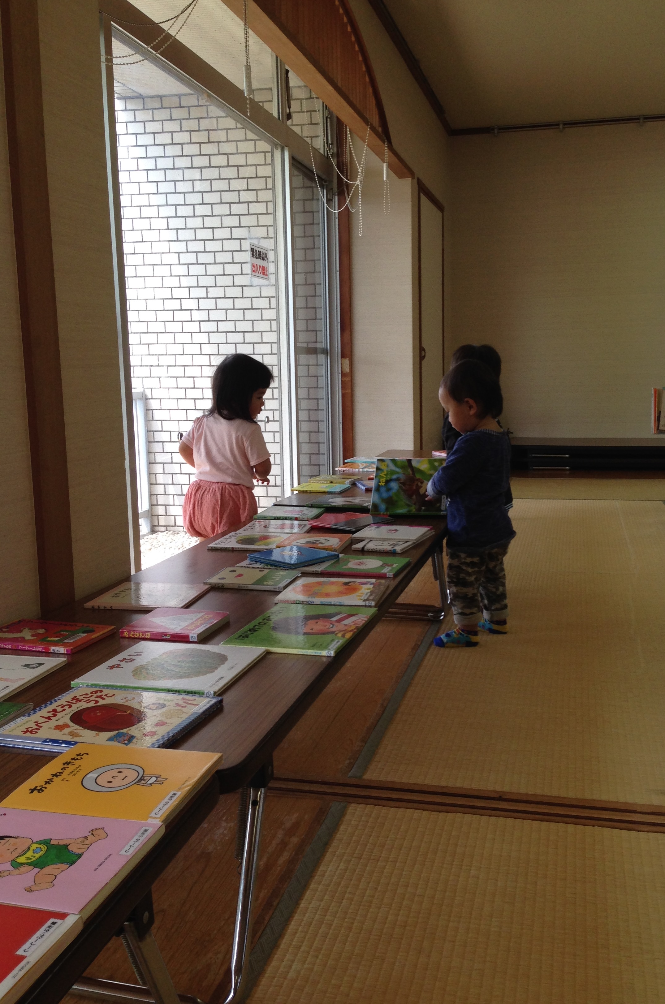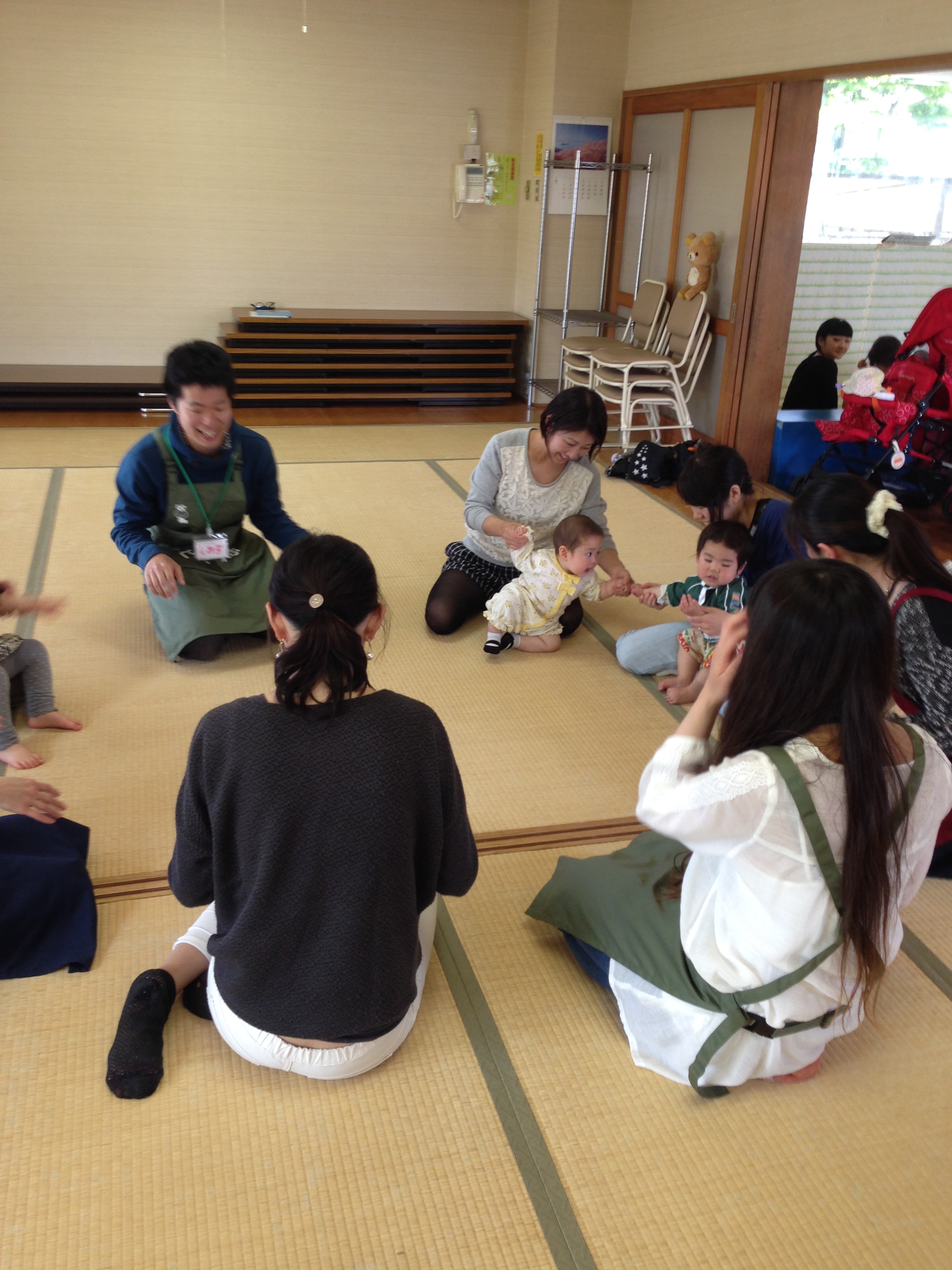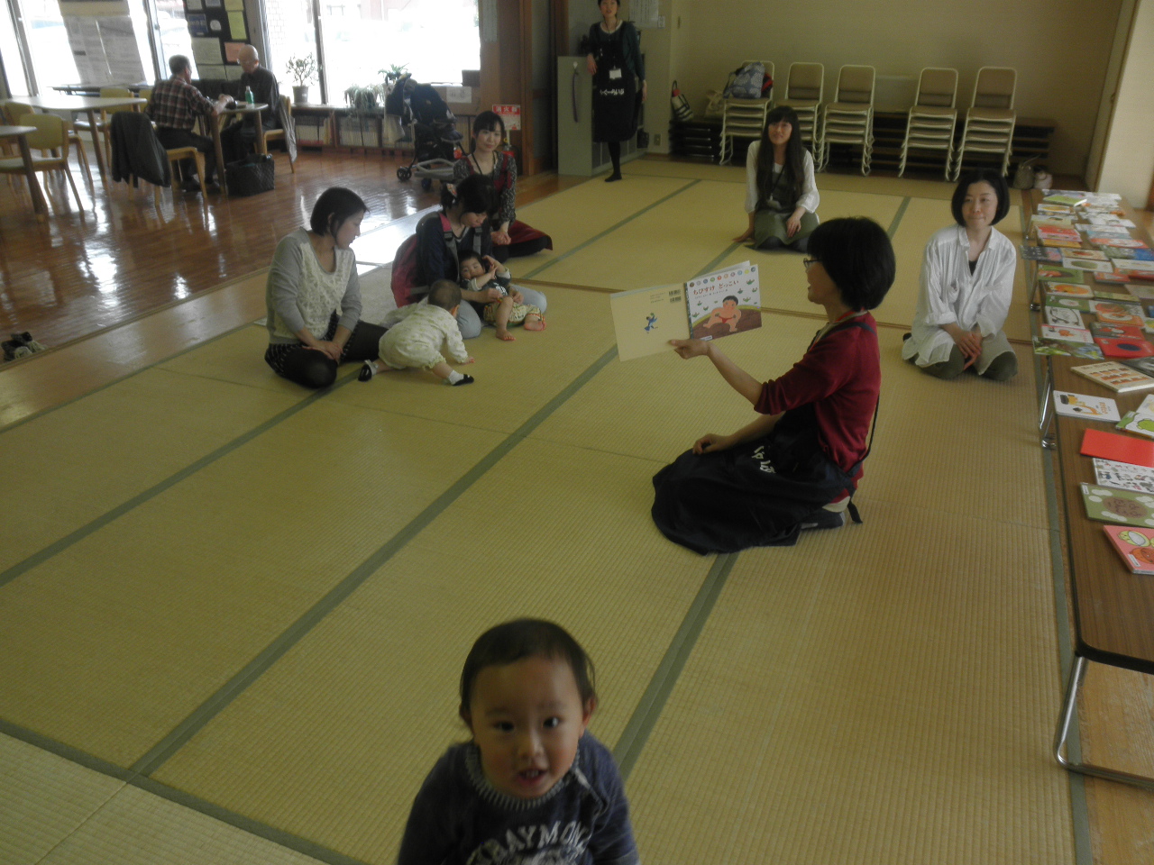 今日のおはなし会では、初めて私たちのおはなし会に参加された方もいらっしゃいました。初めて参加したあかちゃんは最初は場所見知りをしていましたが、だんだんと慣れてくると最後はスタッフに向かって「バイバイ」と手を振って帰っていきました。