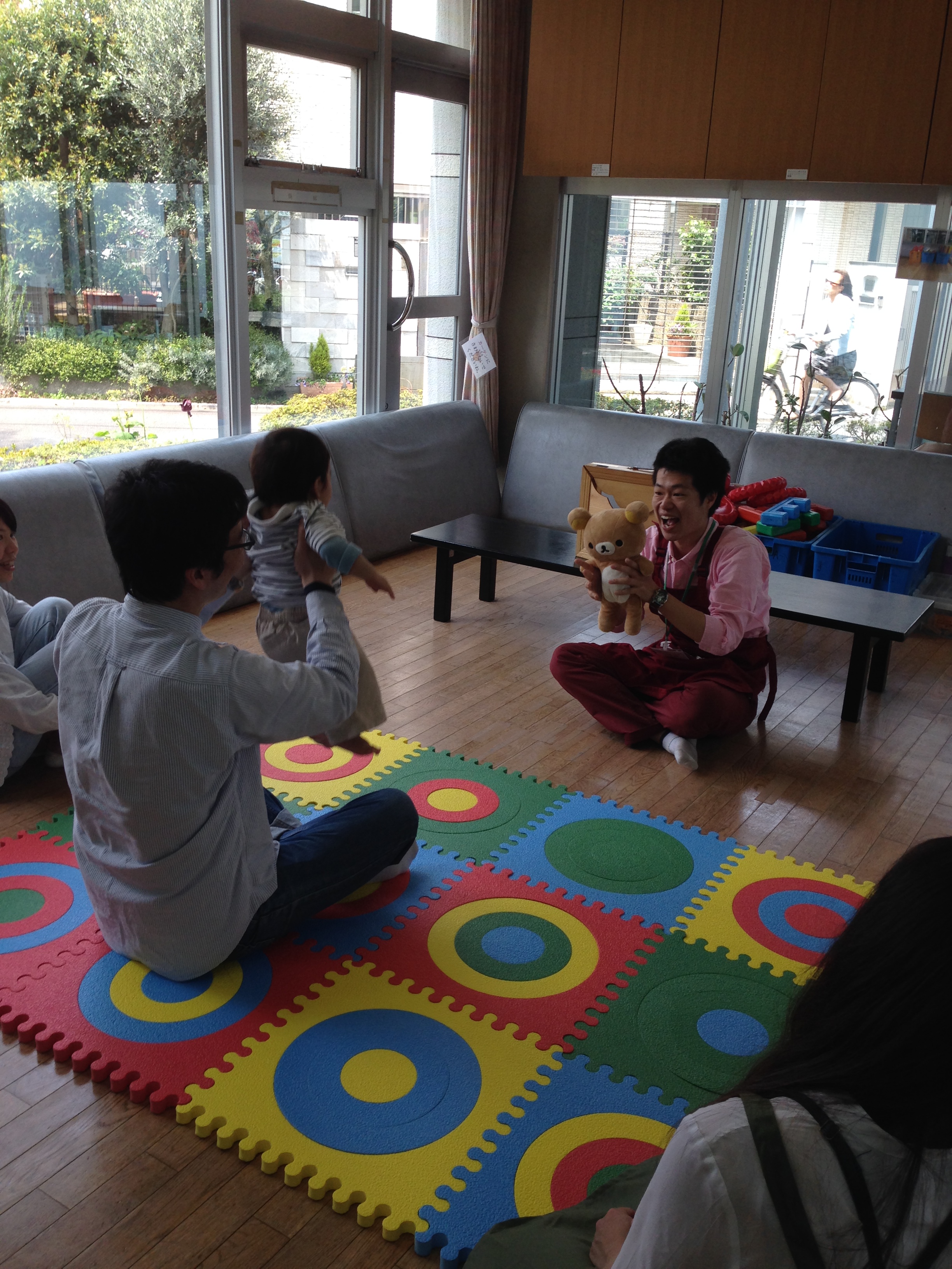 お父さんがお子さんを高い高いをしてわらべうたを一緒に楽しんでくださいました。