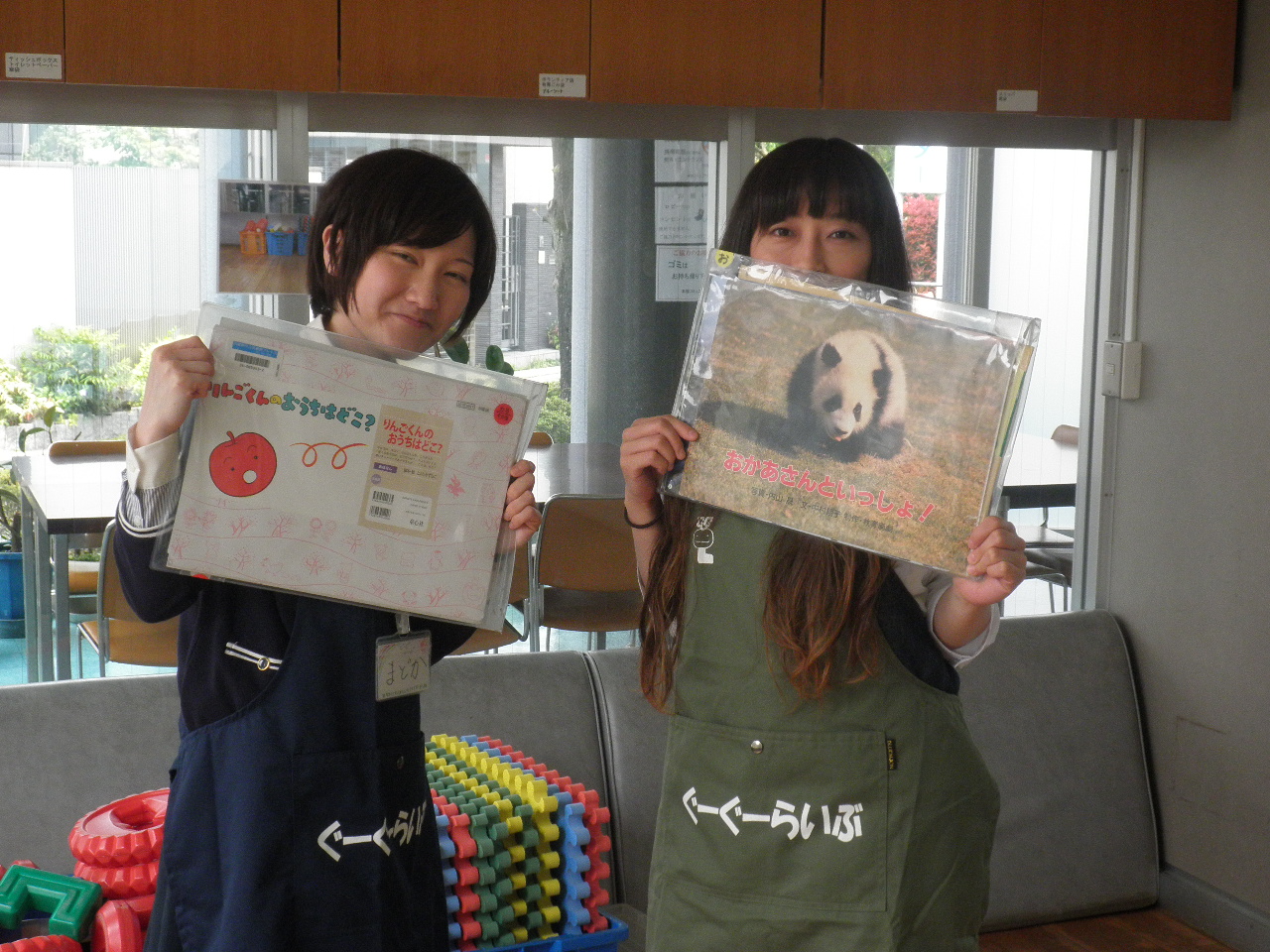 おはなし会のあとは、いないいないばあブームが起こりスタッフやお父さん、お母さんに向けて可愛くいないいないばあを見せてくれました。