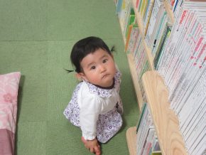お昼寝の時間なので、きっと眠いのでしょう・・・眠い目をこすってフラフラしながら本棚に向かえど千鳥足です。がんばって起きようとしてる~♪