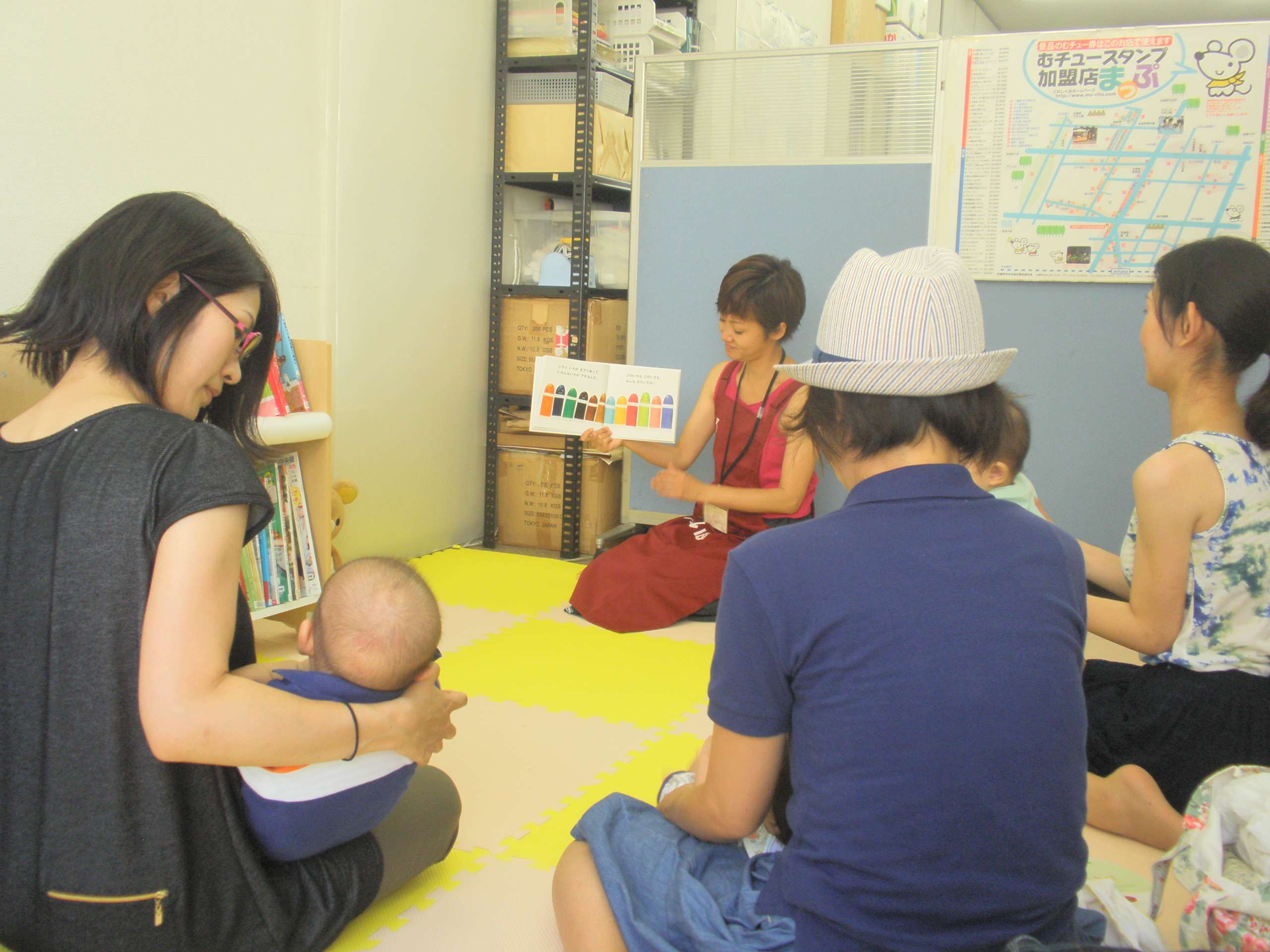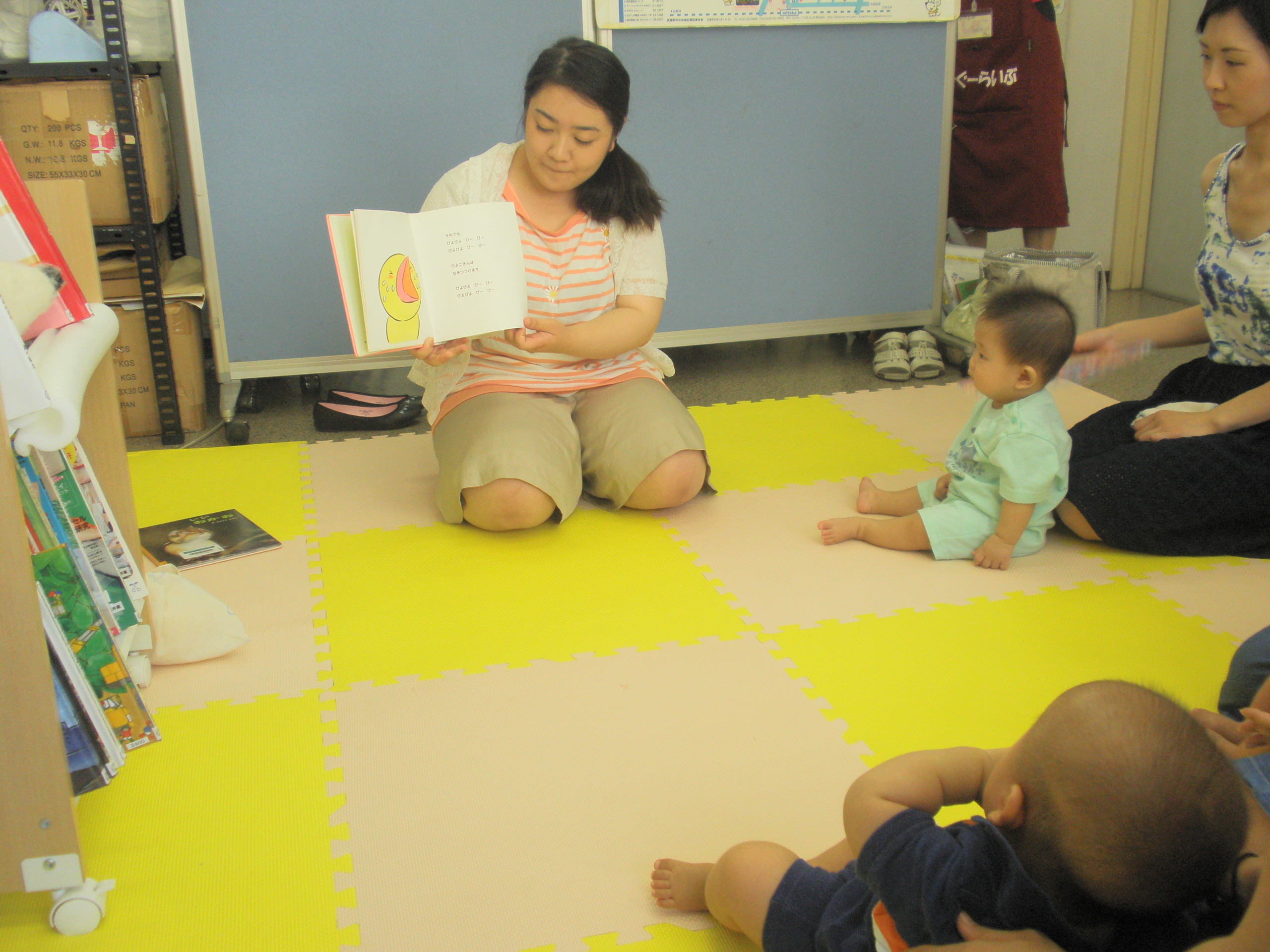 11時からおはなし会だのに、時間になっても誰も来ず・・・いつも来てくれるHくんファミリーも8月は来れないとご連絡をいただいたので、もう皆さん猛暑と夏休みでいらっしゃらないかしら・・・の、あきらめムードでいたところ、11時過ぎてからいつも動じず大物のJくん親子が登場!そして、いつもどおりのおはなし会のスタート♪
