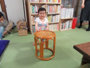 最初はべそをかいていたHちゃんですが、最近お気に入りの籐椅子ウオーキングを始まるころには満面の笑顔