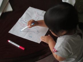 大人の頭は?だらけですが、Yくんは得意顔。「も~いっかいやる」なんでもマネするFちゃんも。