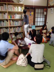 「手を洗って」「座って食べて」といろんな声が飛び交うなか、中野のおはなし会を終えたスタッフが帰ってきました