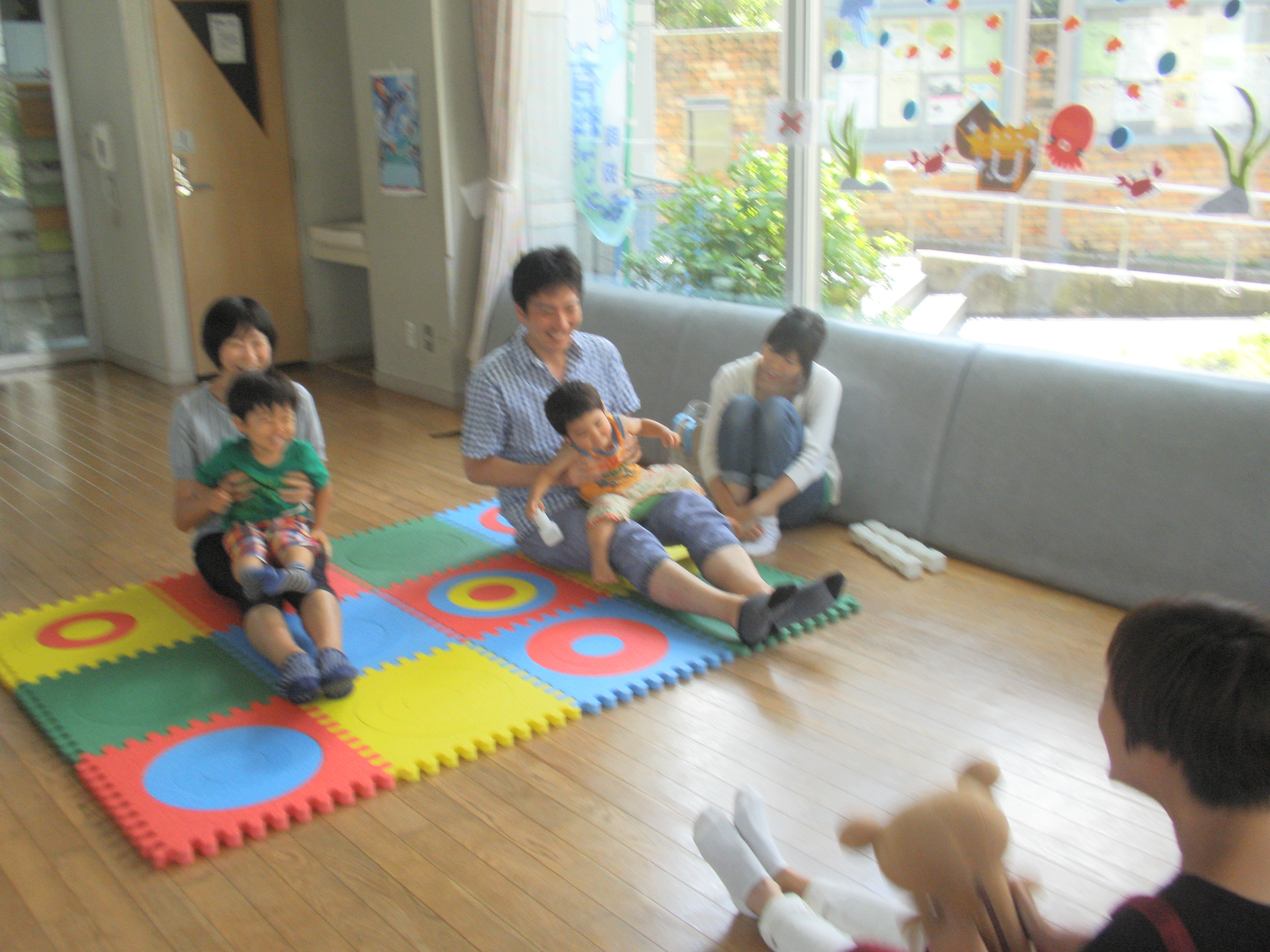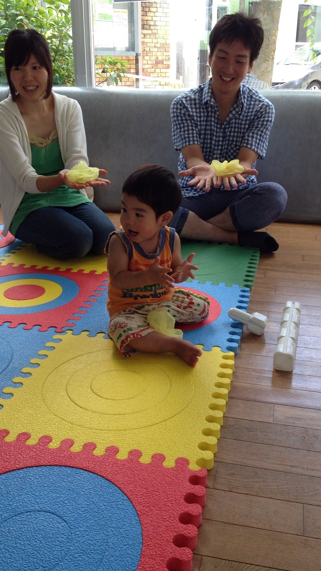 「いすどっせ~」と、パパやママにおイスになってもらって、ガタガタゆらしたり、どしん!としたりできゃっきゃと声があがります♪