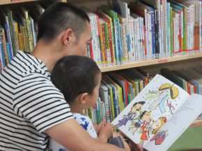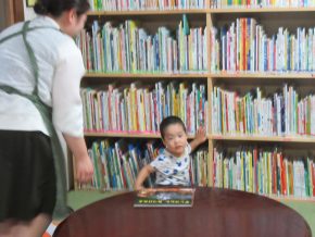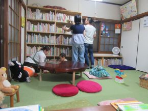 そのうち、スタッフMちゃんと遊び、おとうさんとおかあさんは、ゆっくりと本棚を閲覧。