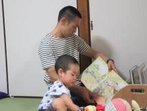 おとうさんを独り占めして、いつものように絵本を読んでもらいます。