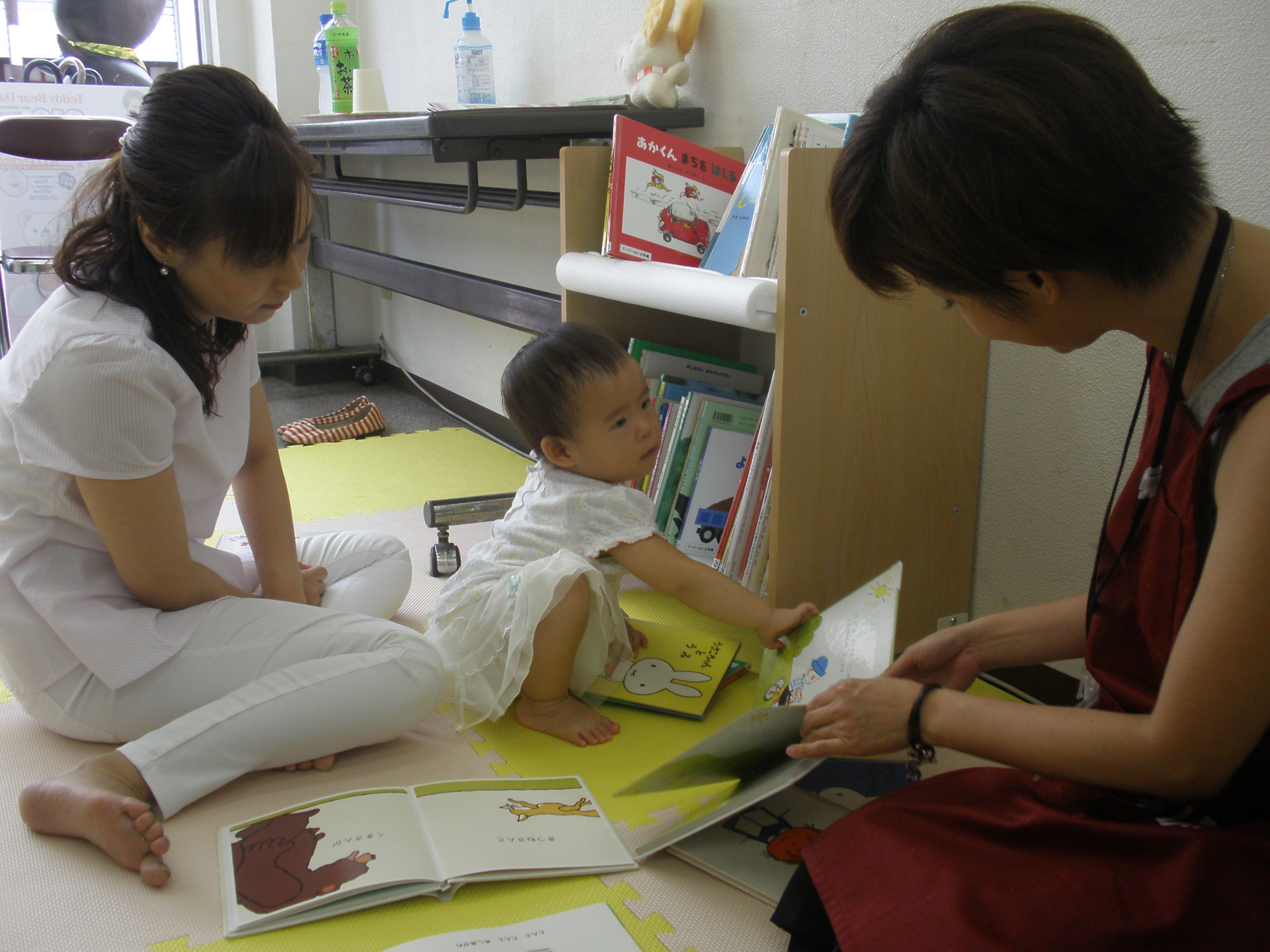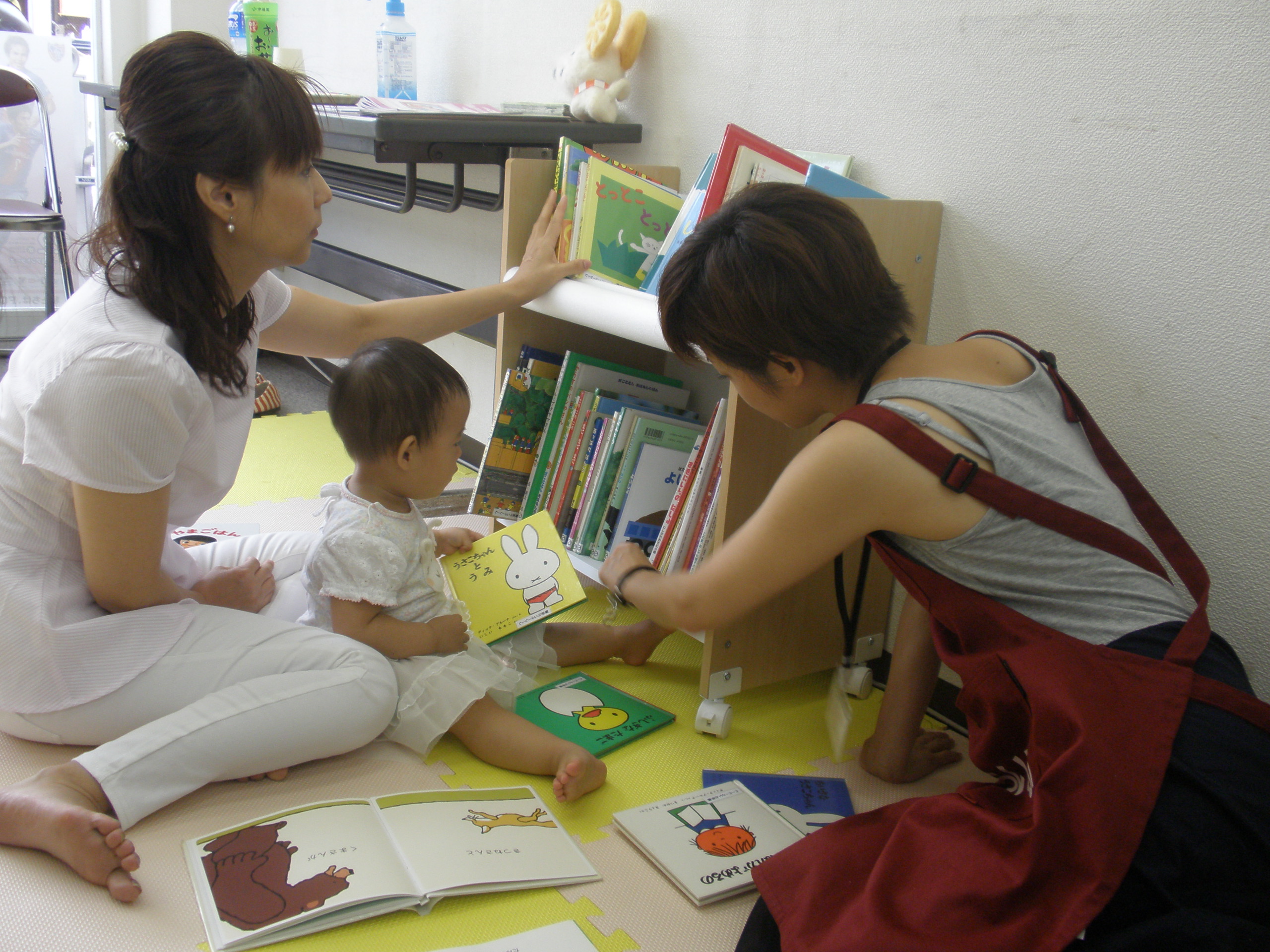 おはなしぱんだ終了後の時間。絵本大好きKちゃんは気になる絵本を自分で沢山えらんではスタッフに渡したり、自分で読んだり・・・♪