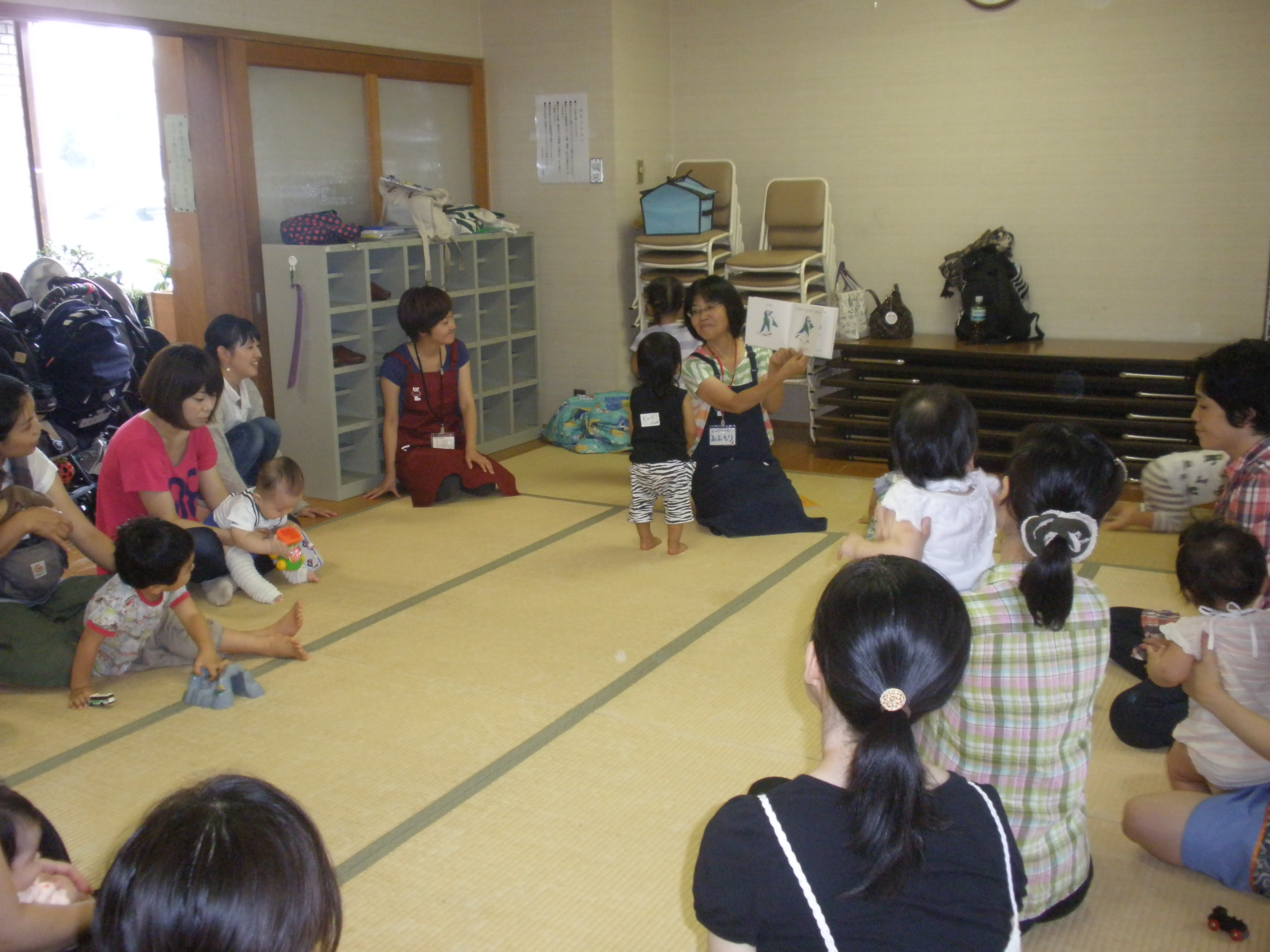 わらべうた「きゅりができた」夏らしいわらべうたで、何度もくりかえすことで覚えてくださっている方も♪沢山の方と一緒にうたって楽しい時間となりました!