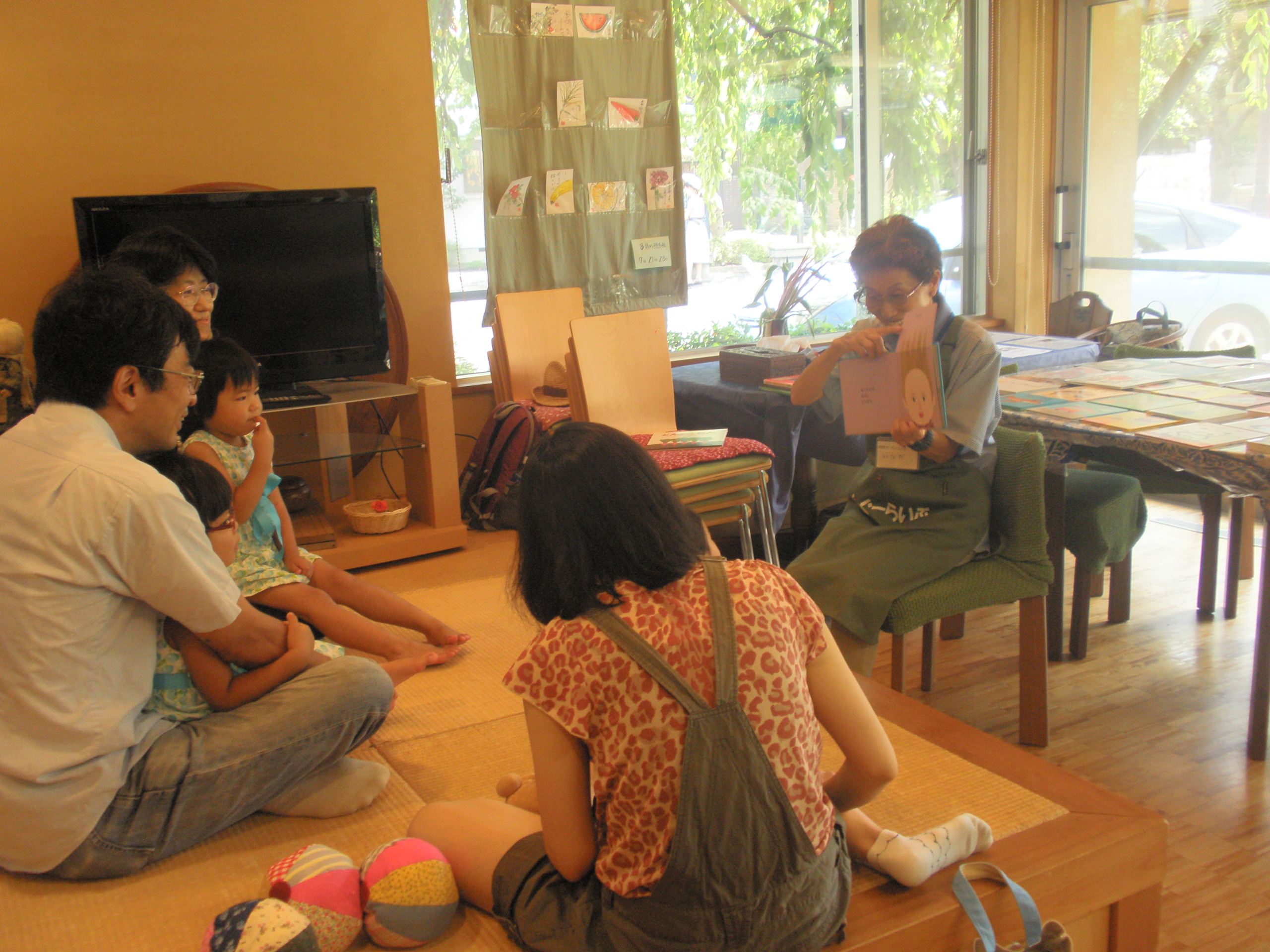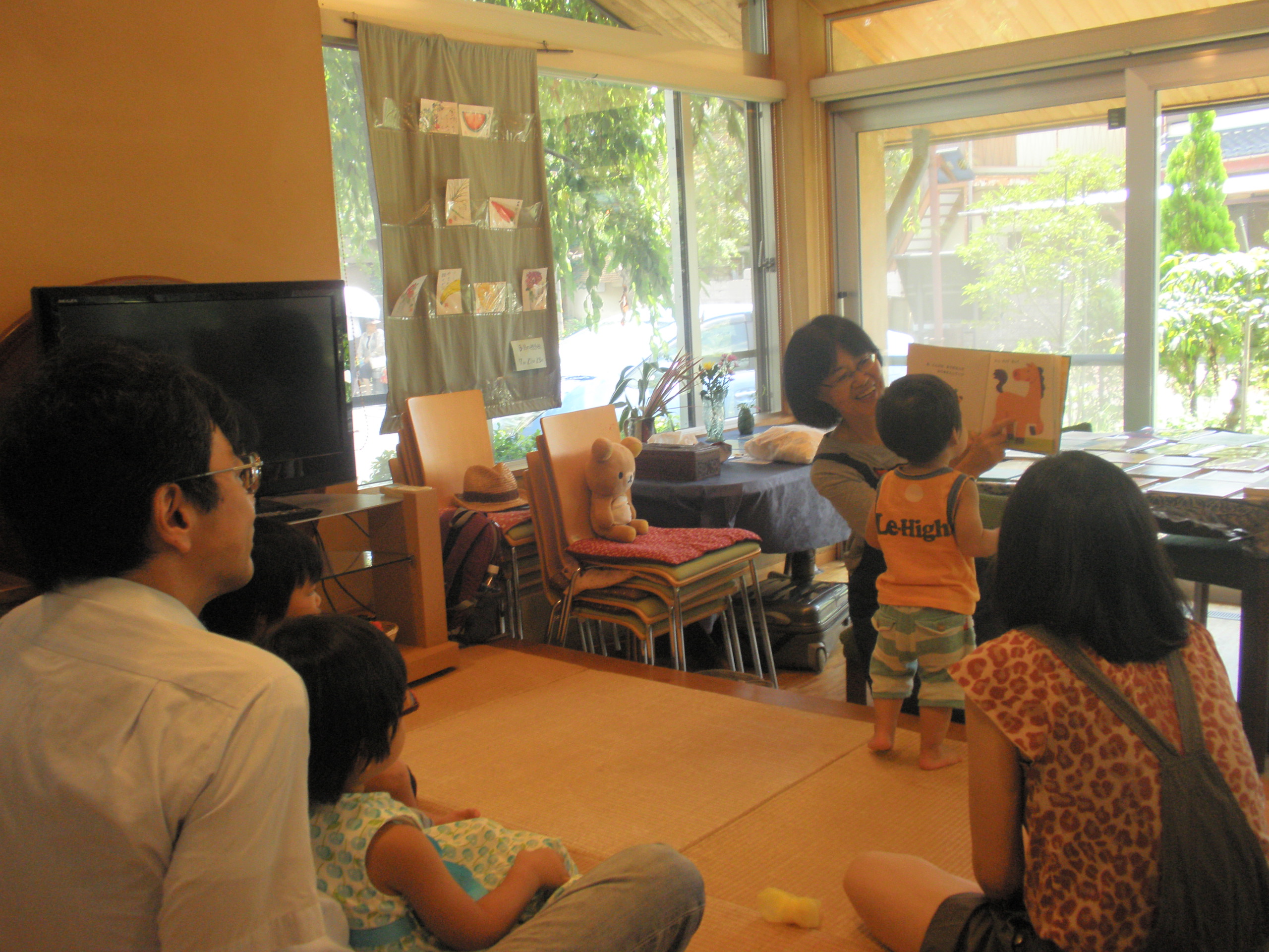 また、次回こちらでのおはなし会は9月19日(土)の11時からです!そしてこちらでは、今月から定期開催することになり、毎月1回、第三土曜日(予定)の11時から12時までおはなしぱんだぐーぐー文庫をおこないます。とっても気持ちの良い場所なので、お近くの方は是非遊びに来て下さい!おまちしてまーす!