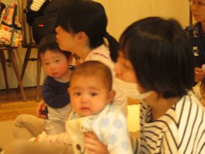 少しつづ いつものお母さんたちが集合で、おはなし会が始まります。