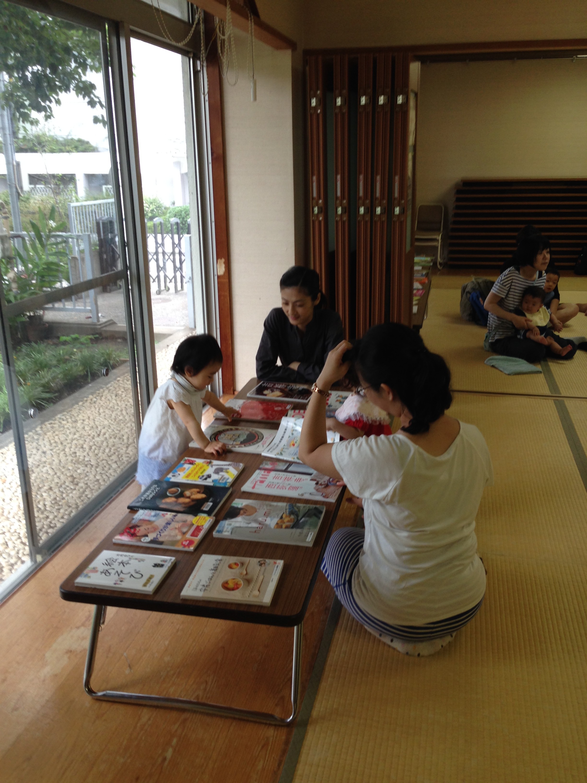 読みきかせた絵本だけでなく、大人用の雑誌や育児マンガ(育児本もありますが、ゆっくり読んでる時間がない時期なので)などもご用意しています。