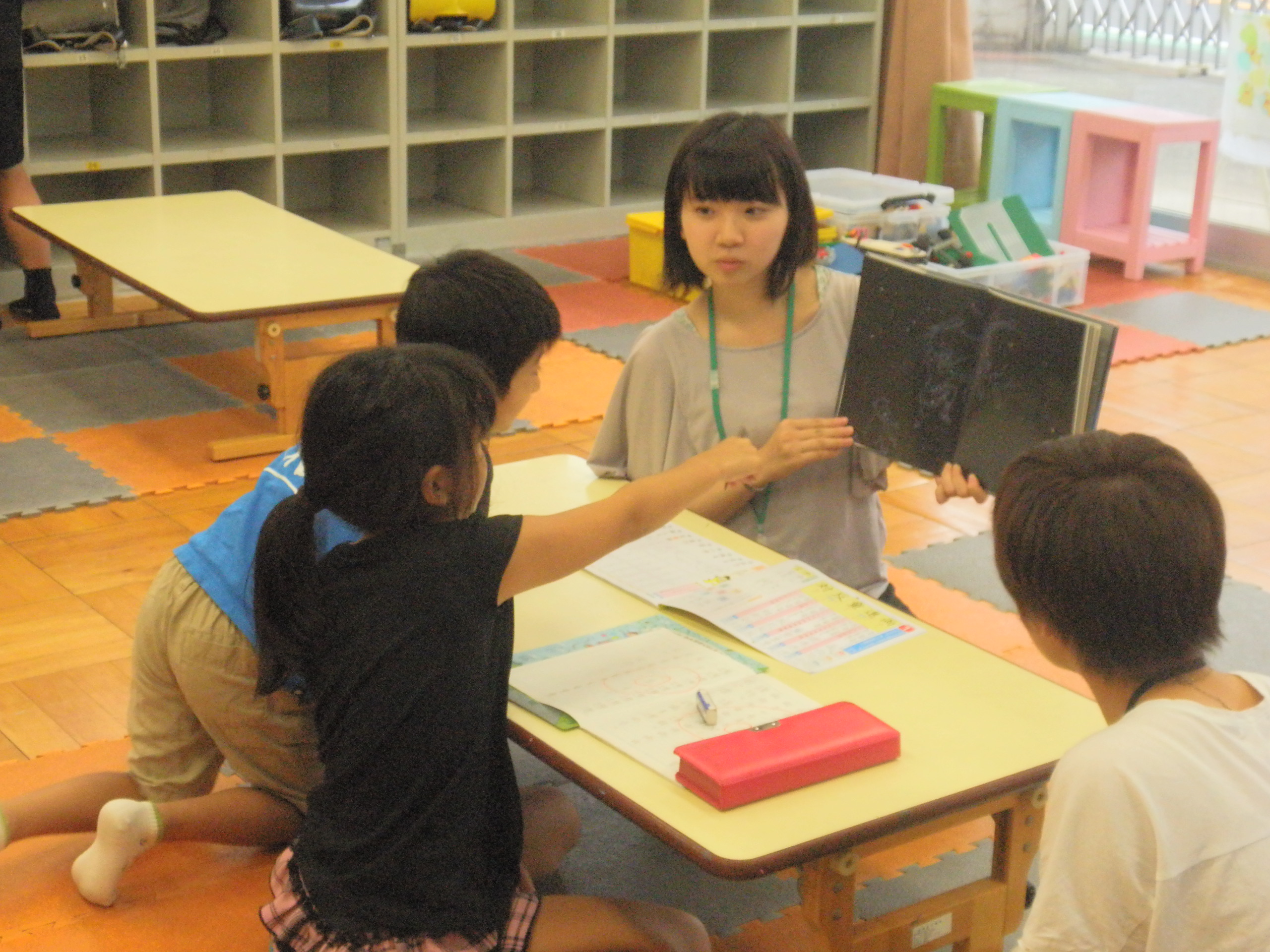 おはなしが終わった後は、ずっと参加してくれていた子達から採点が・・・!はじめは男の子が100や1000など、いろいろ数字を紙に書いていたけど、「その点数くれるの?」と聞くと「だめ!これぐらいはとって欲しいね~」とおあずけに(最終的に、0点もくれませんでした。精進します!笑)そして、それを見ていた女の子から、「じゃあ私があげる!」と、沢山の点数をいただきました~!「またねー!」って、ありがとう!