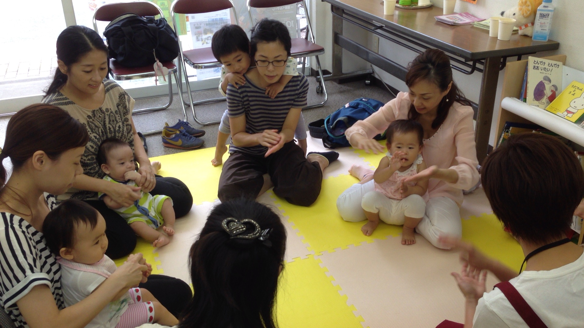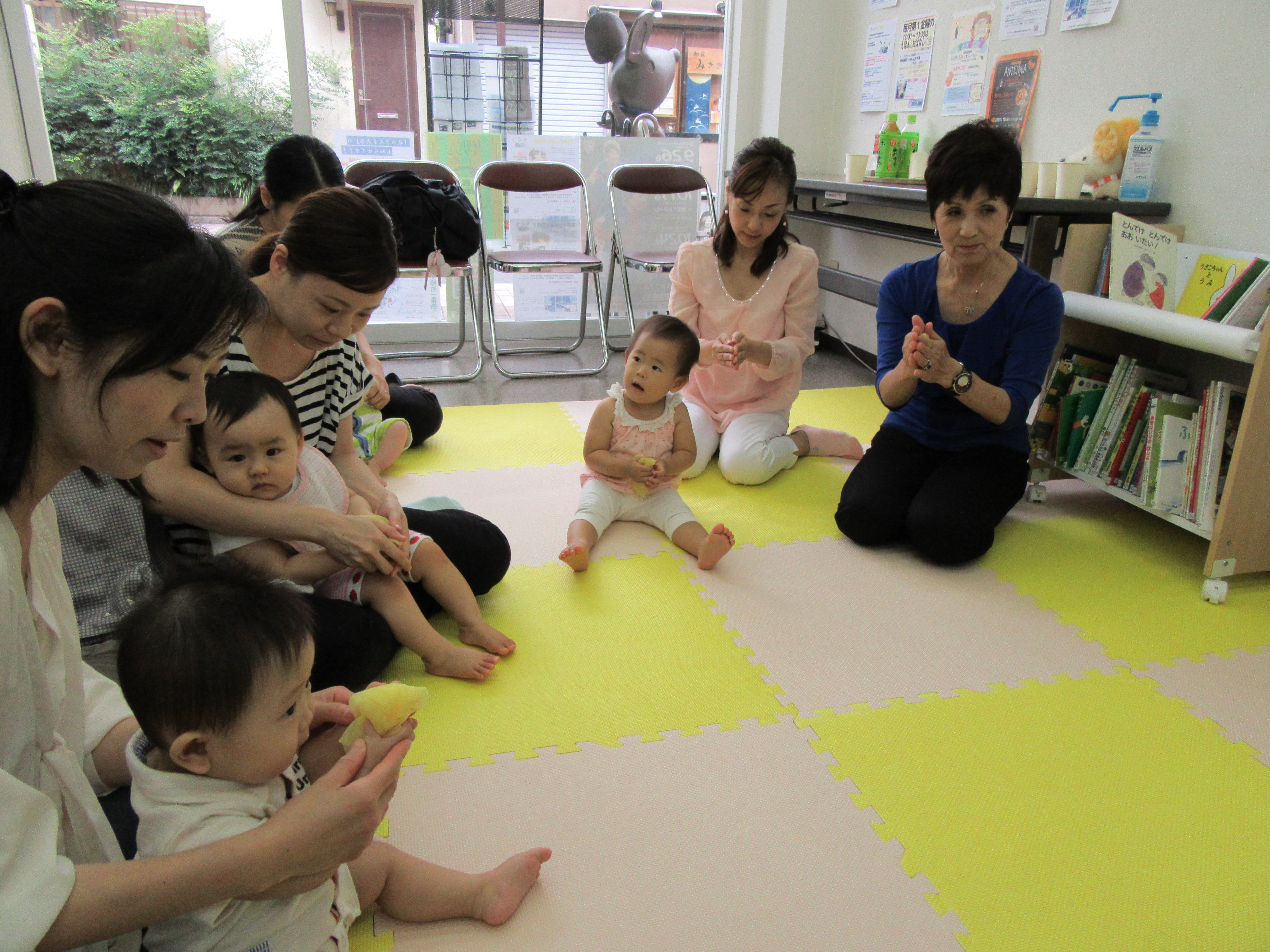 朝から空が曇り気味でしたが、今日のmu-chu.comもおはなしの時間になると続々と集まって下さいました。そしていつものひよこのわらべうたでおはなしの時間はスタート!