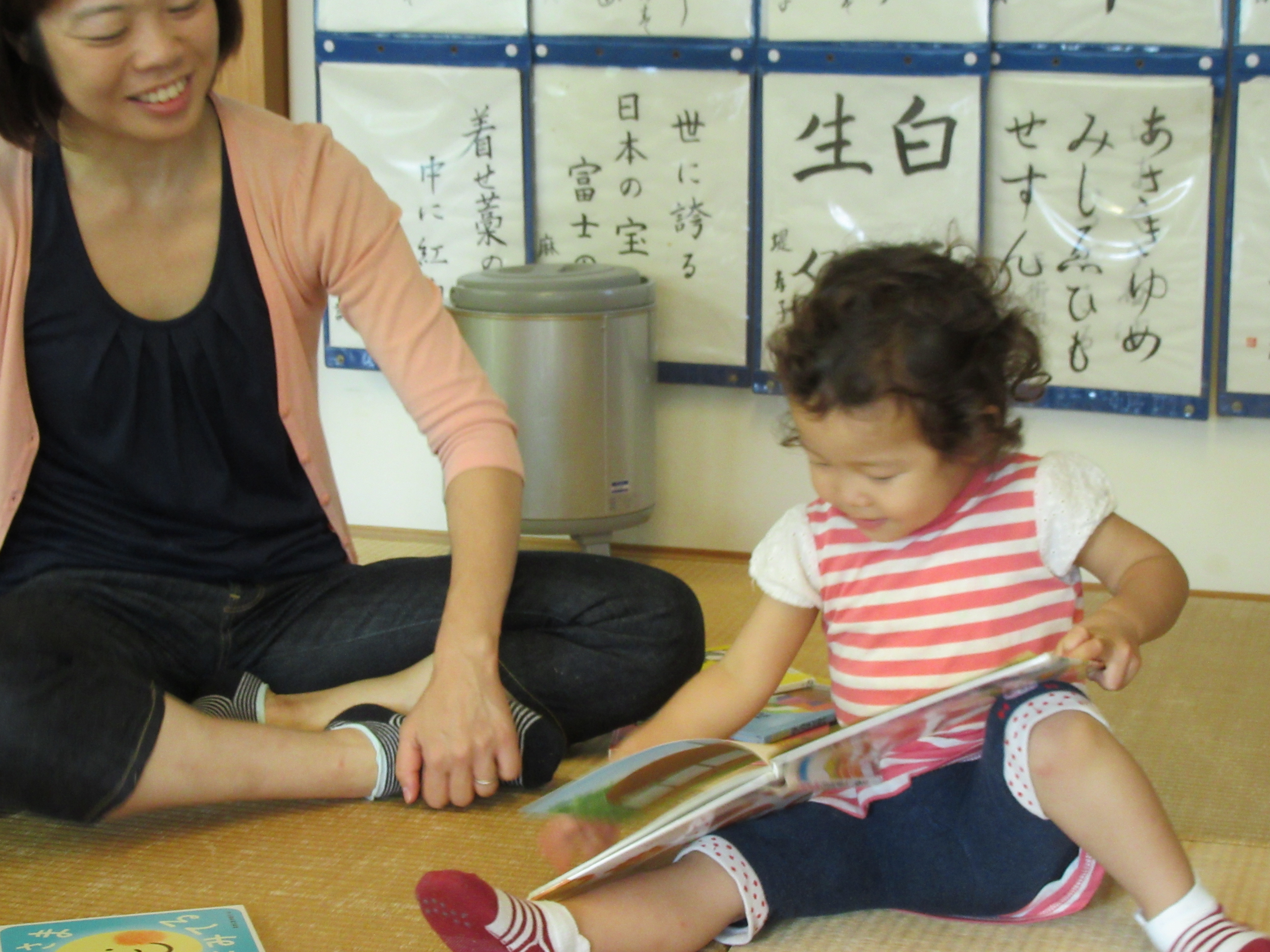 場所見知りで、はじめはもじもじしてたけど、すっかり慣れて絵本をいろいろ楽しんでくれました♪絵本をとおして自然に仲良くなれるのは、楽しい時間の共有があるからでしょうね。