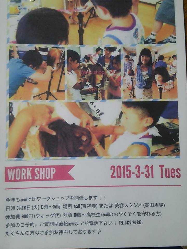 絵本設置店舗の一つ、吉祥寺南町にある美容室acviiさんでは3/31(火)13時から10歳~高校生を対象にワークショップを開催するそうです(参加費3000円)。こちらのワークショップにご興味のある方、またご予約・ご質問は直接acviiさんまでお問い合わせください。(0422-24-8971)