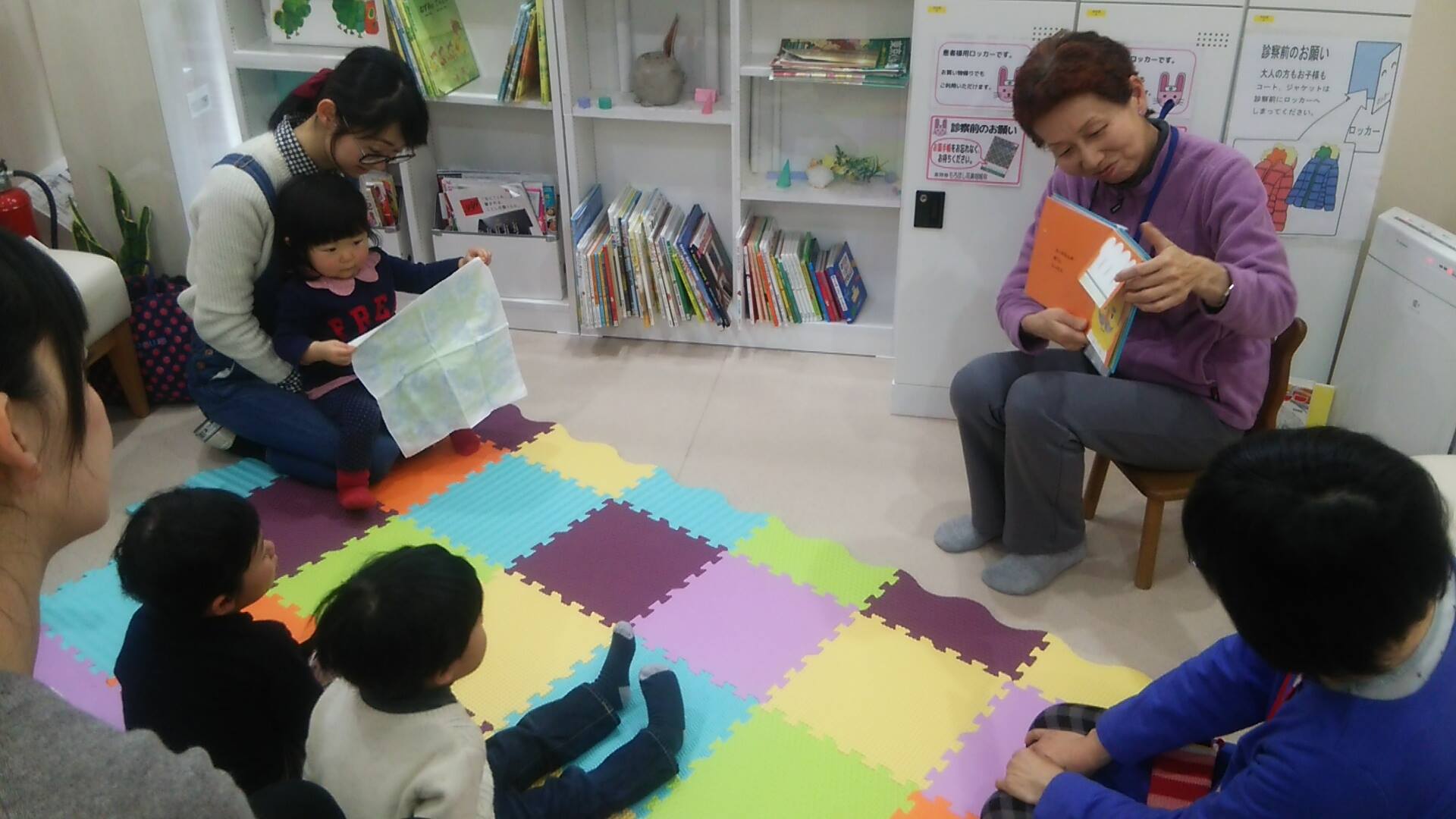 今日は絵本設置店舗でもある、吉祥寺もろほし耳鼻咽喉科さんで初めてのおはなし会を行いました。