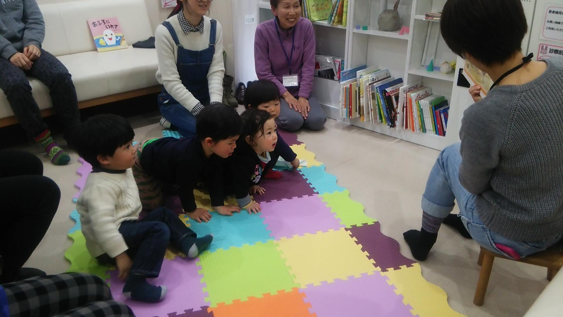 病院でのおはなし会ということもあってか最初は緊張していた子どもたちも、おはなし会が進むにつれてだんだんと絵本にかぶりつきで聞いてくれていました。
