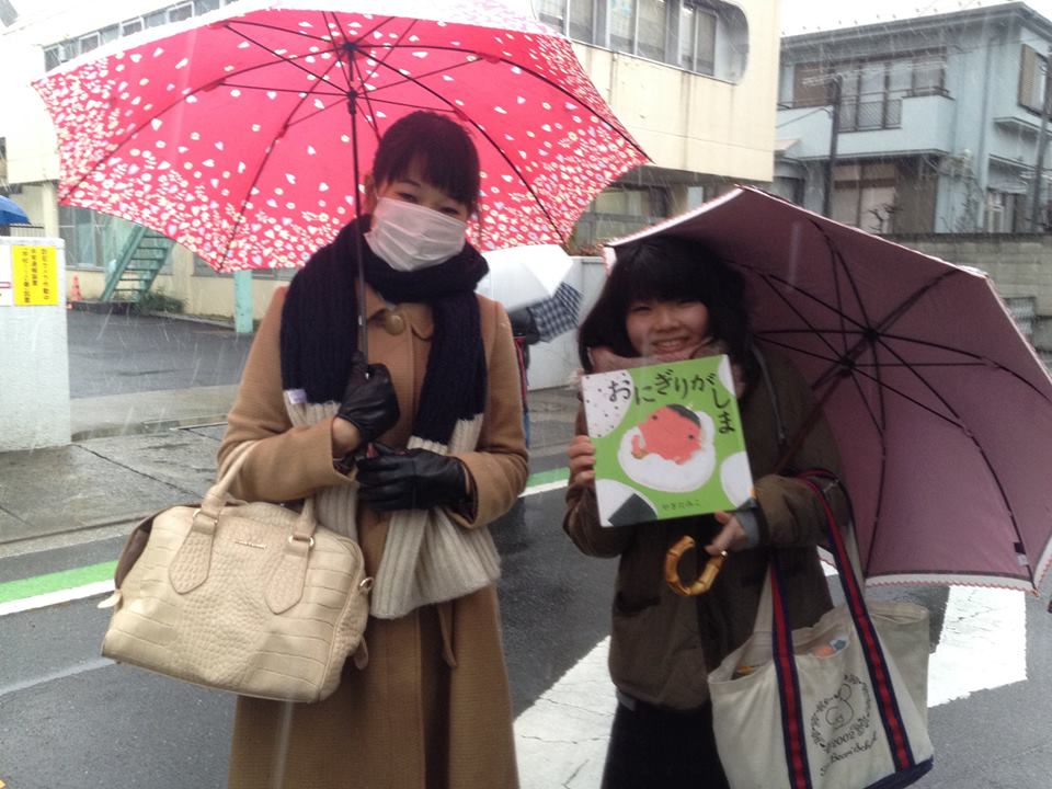 外は雪模様ということであそべえにいる子も少なく、遠くからチラチラと覗いている子が多かったのですが、「おにぎりがしま」の読み聞かせでは子どもたちが集まり、一気に大盛況となりました。