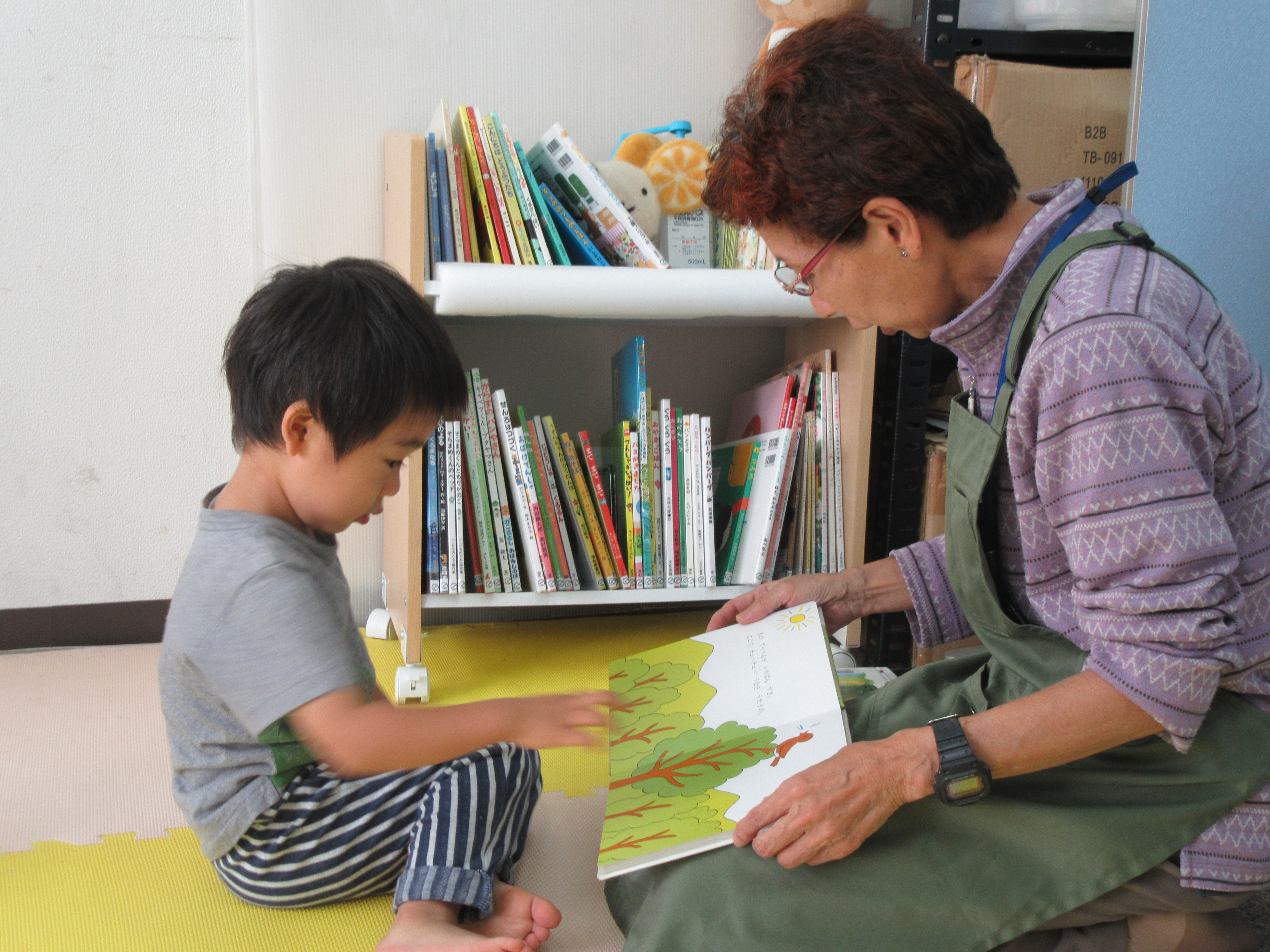 子ども達もすっかり慣れてきて、スタッフに「これ読んで!」と一緒に絵本を楽しんだり