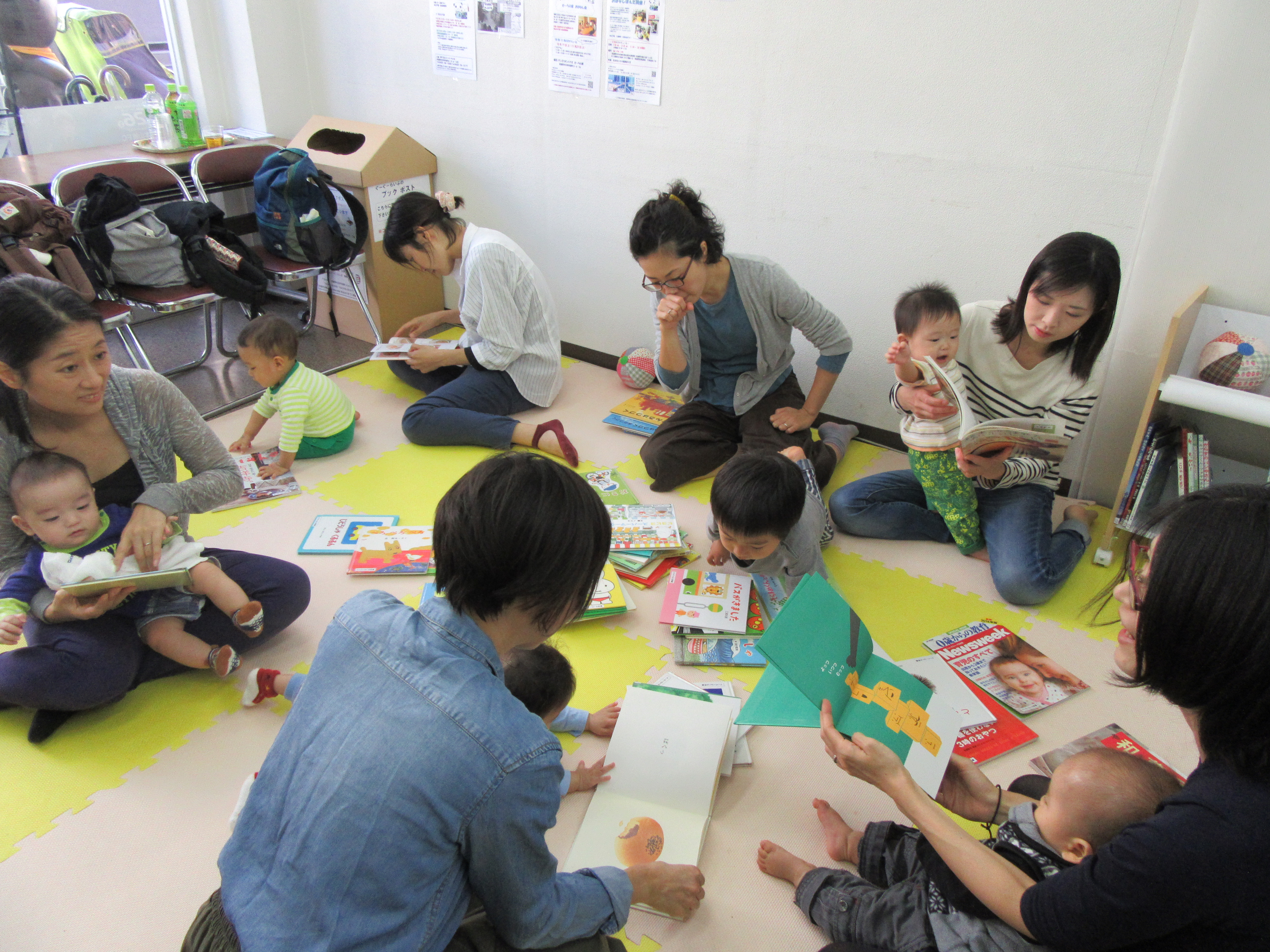 大人も子供もいろいろな絵本や雑誌などを手に取り、わいわいパラパラ・・・♪