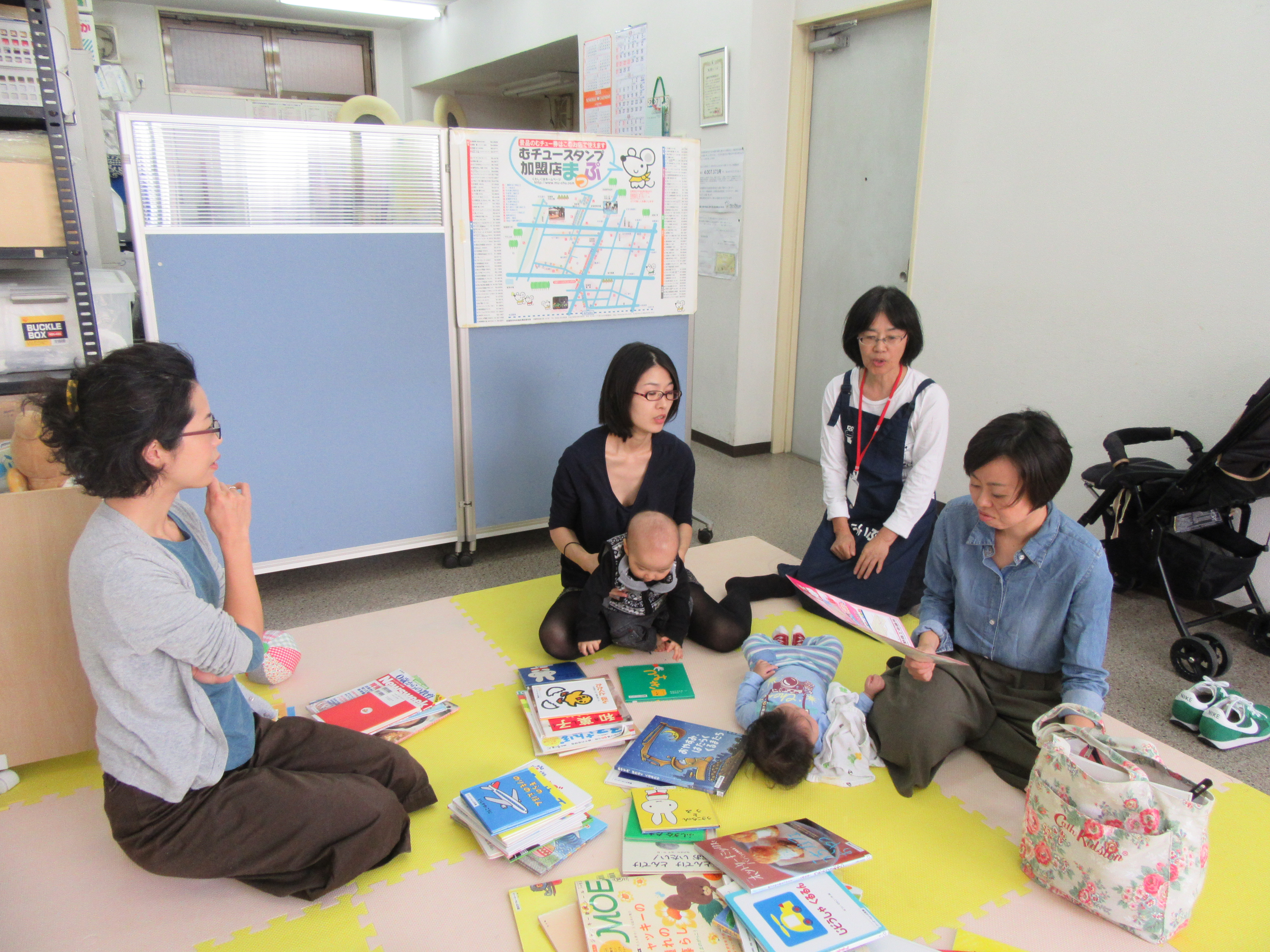 大人同士もすっかり顔見知りになったので、スタッフがいなくても、楽しくおしゃべりされています。もちろん、無理におはなししなくても全然OK!気を遣わずに過ごせるのが、ぐーぐーの良さと、手前味噌ですが☆