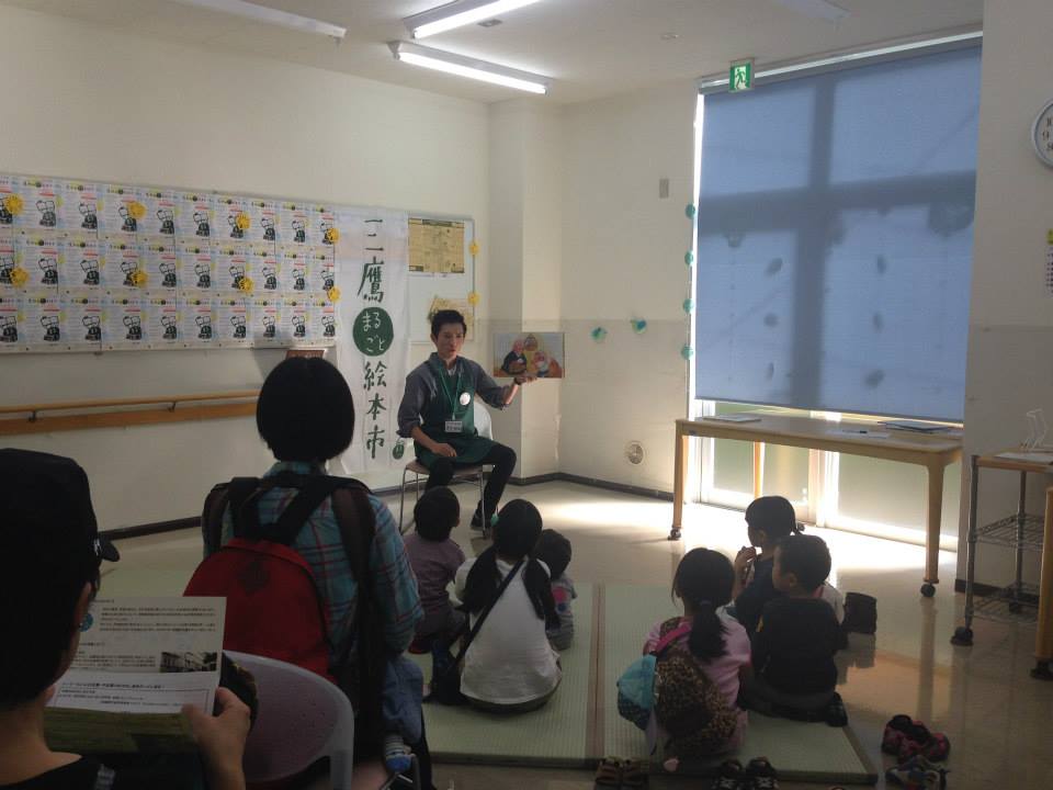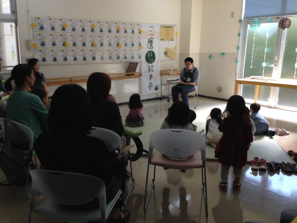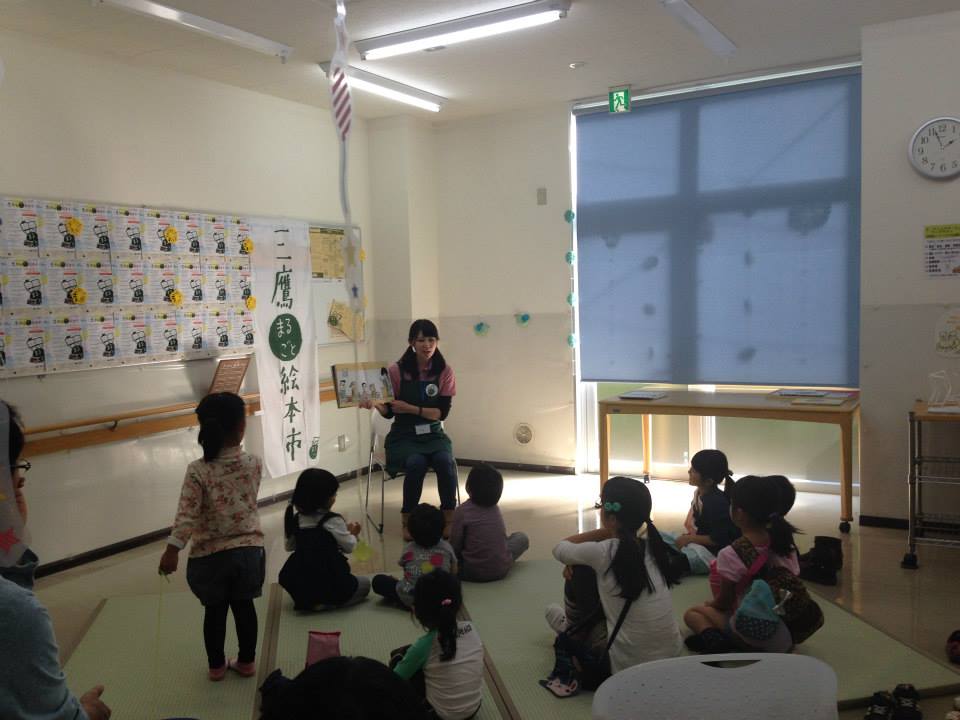 「知ってるー!」と言ってた子もどんどん絵本の世界に入っていき、最後までみんな集中して聞いてくれました。とっても綺麗なとおる声のスタッフですが、女の子の声で読むとまた違った楽しい世界ができるのですね。